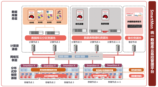天玑科技PBData-K混合负载数据库私有云平台在数据库服务层通过软件定义,划分分区资源池 免费小说在线,物理资源池,备份资源池,在结合底层智能分布式存储的基础上,根据不同介质磁盘创建不同性能等级的存储池策略,为用户高负载业务,低负载业务,开发测试业务,备份业务等提供从计算资源,存储资源到网络资源从上到下的统一整合优化架构。